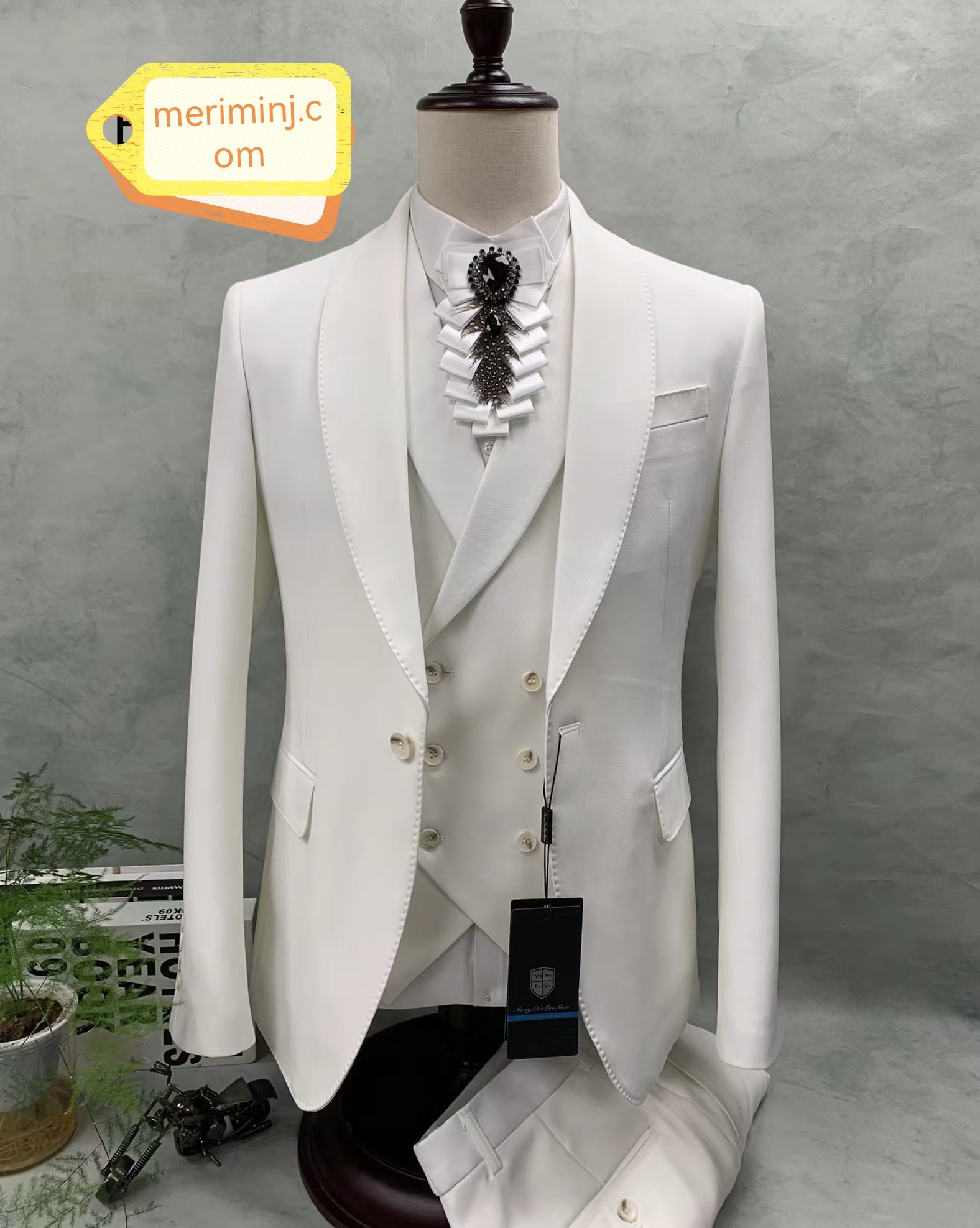 Slim Fit White Tuxedo With A 6-Button Shawl Lapel Vest.