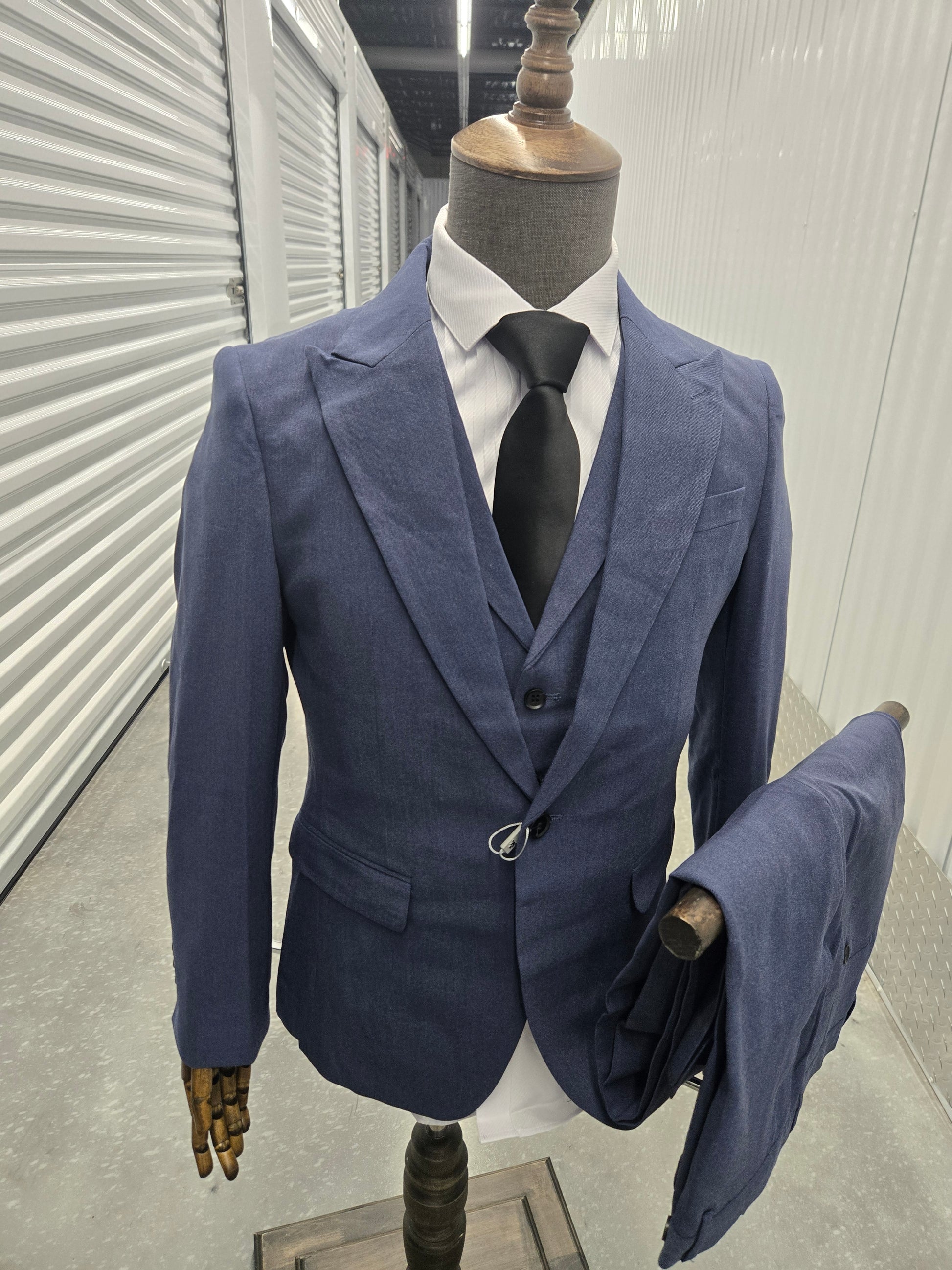 Classic 1- Button, 3-Piece Slimfit Peak lapel Suit