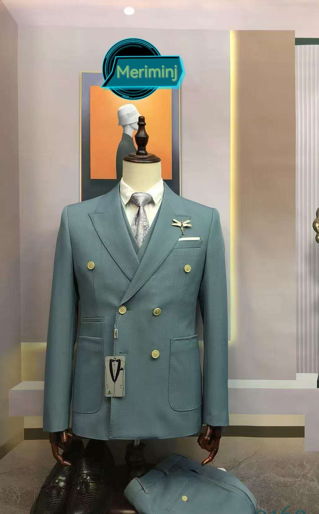 6-Button, 3-Piece Slim Fit Double Breasted Blue Suit With Peak Lapel
